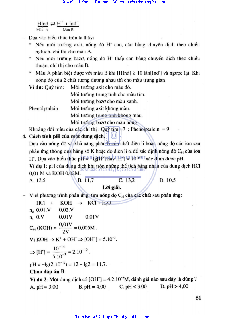 X. CÁCH TÍNH PH CHỈ THỊ AXIT – BAZƠ