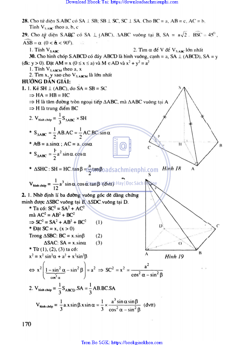 Giải Bài Tập Hình Học Lớp 12 Nâng Cao – Nguyễn Văn Lộc