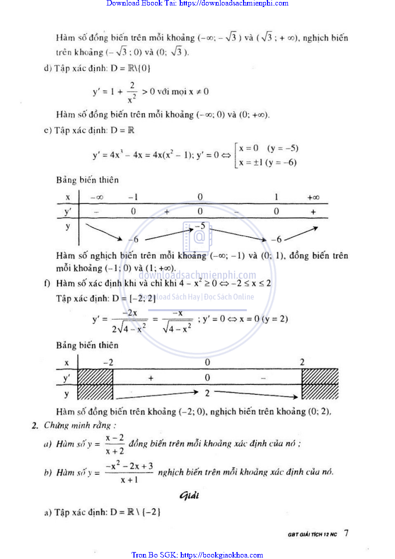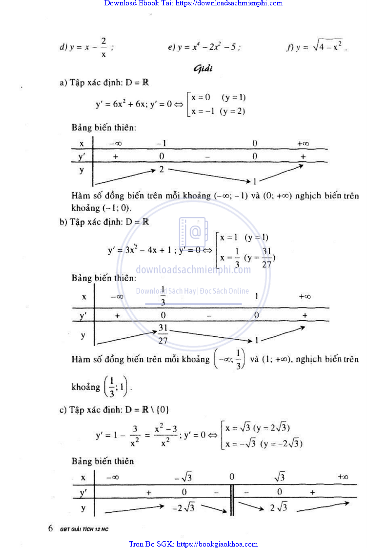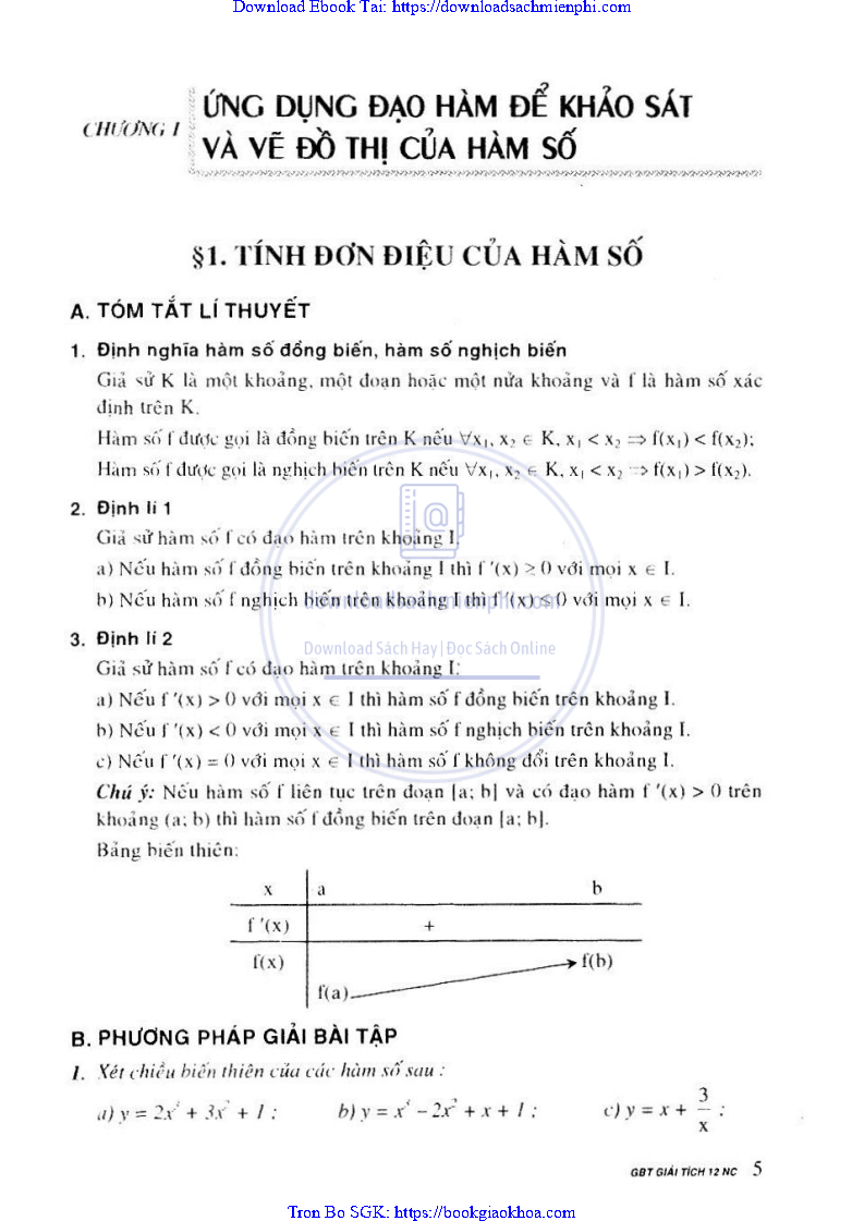 Giải Bài Tập Giải Tích Lớp 12 Chương Trình Chuẩn – Nguyễn Văn Lộc