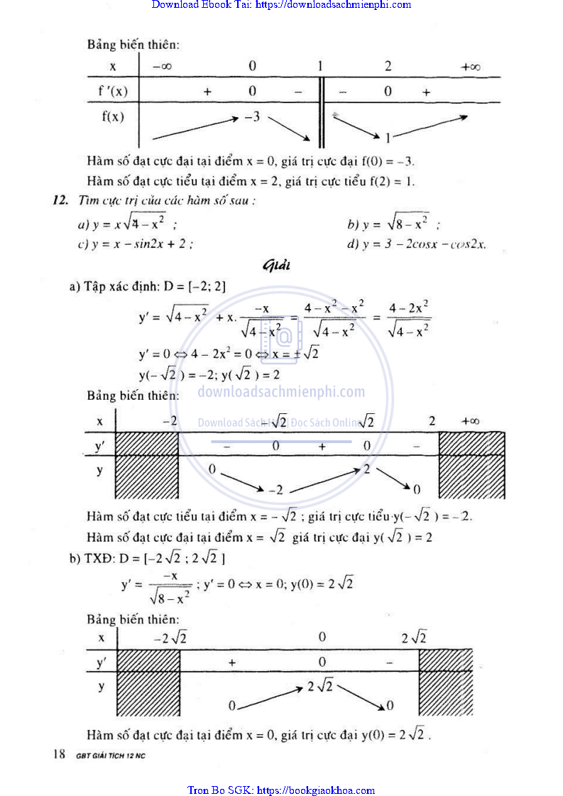 Giải Bài Tập Giải Tích Lớp 12 Chương Trình Chuẩn – Nguyễn Văn Lộc