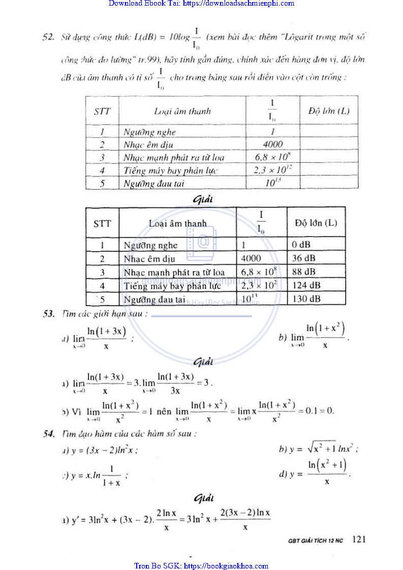 Giải Bài Tập Giải Tích Lớp 12 Nâng Cao – Nguyễn Văn Lộc