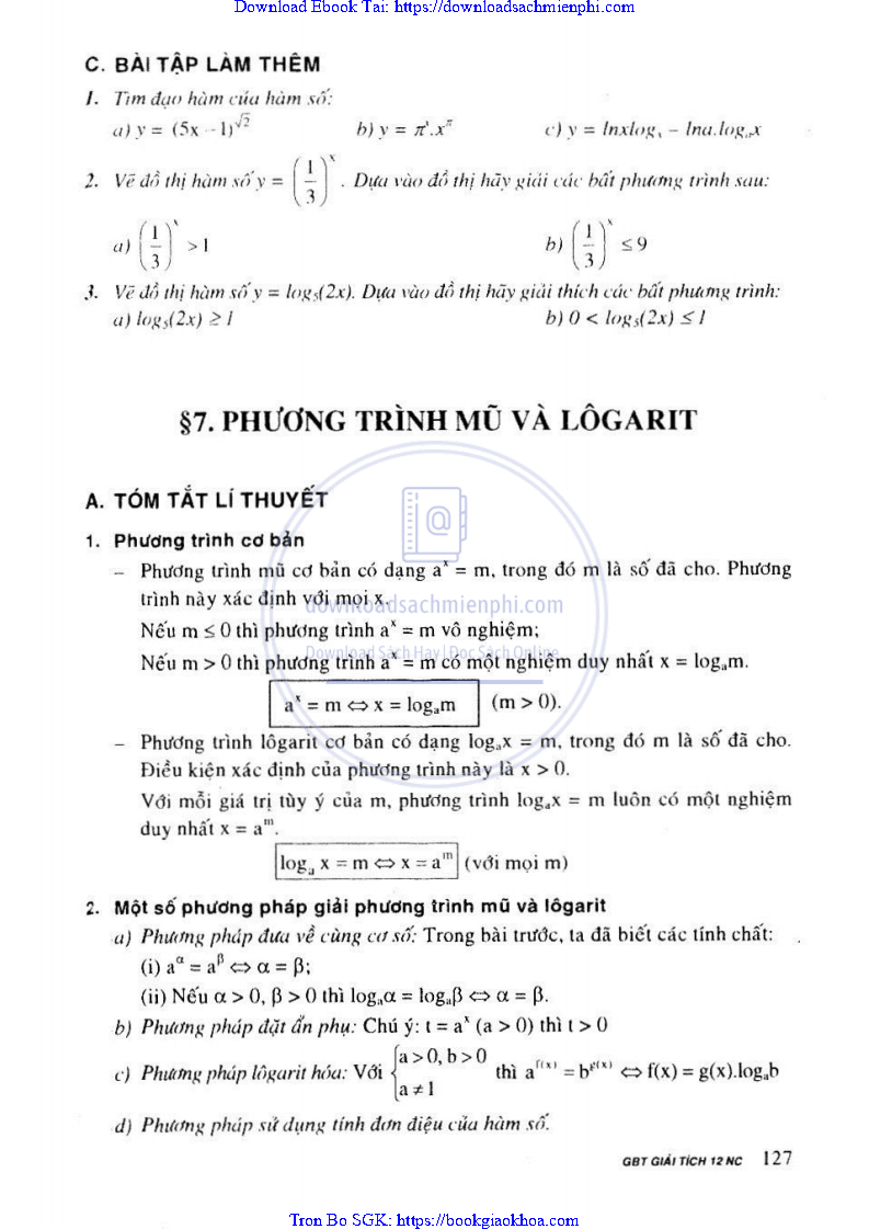 Giải Bài Tập Giải Tích Lớp 12 Chương Trình Chuẩn – Nguyễn Văn Lộc