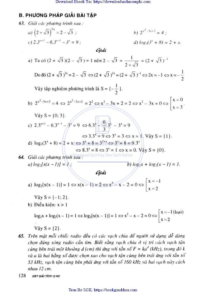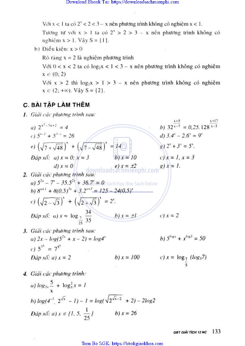 Giải Bài Tập Giải Tích Lớp 12 Nâng Cao – Nguyễn Văn Lộc