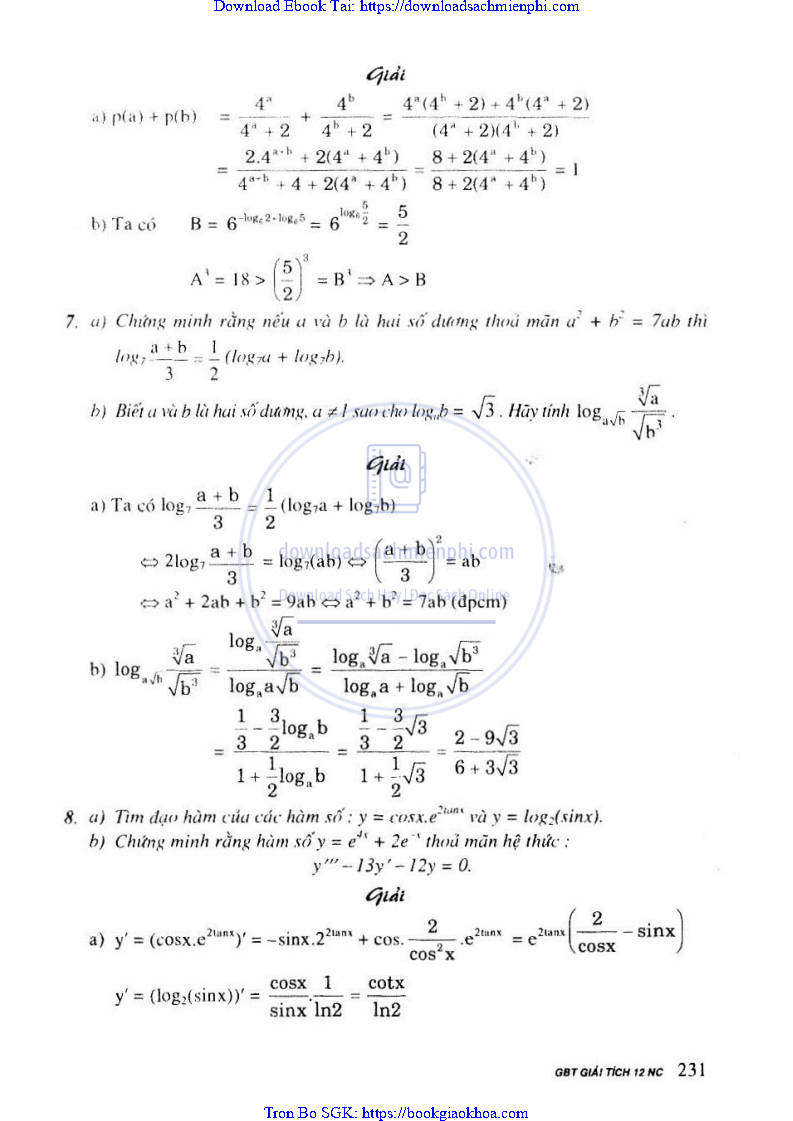 Giải Bài Tập Giải Tích Lớp 12 Nâng Cao – Nguyễn Văn Lộc