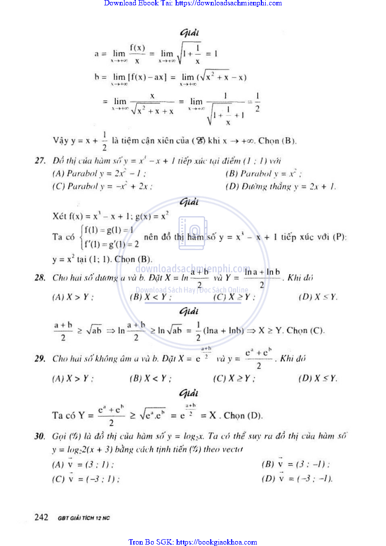 Giải Bài Tập Giải Tích 12 Nâng Cao – Nguyễn Vũ Thanh
