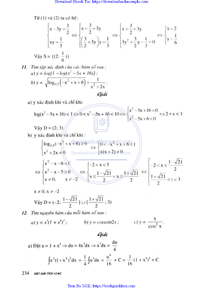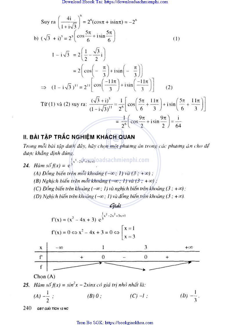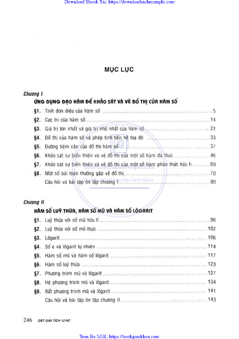 Giải Bài Tập Giải Tích Lớp 12 Chương Trình Chuẩn – Nguyễn Văn Lộc