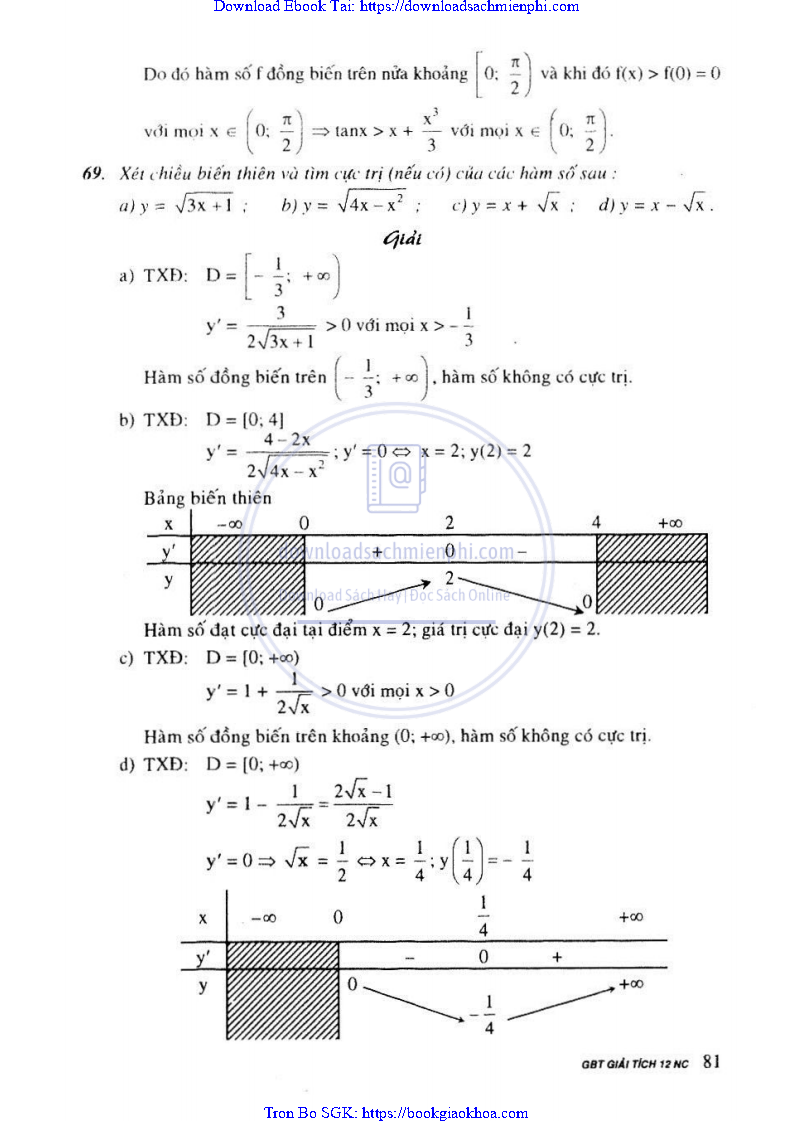Giải Bài Tập Giải Tích Lớp 12 Chương Trình Chuẩn – Nguyễn Văn Lộc
