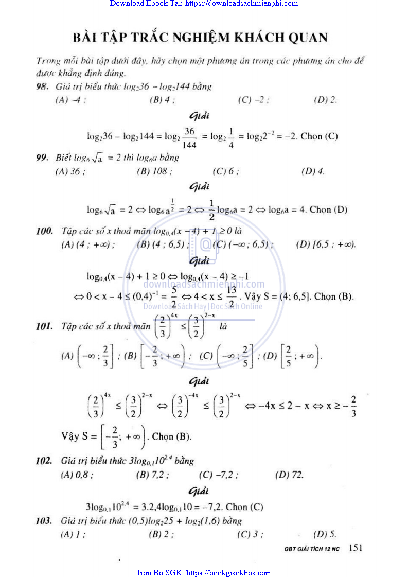 Giải Bài Tập Giải Tích Lớp 12 Chương Trình Chuẩn – Nguyễn Văn Lộc