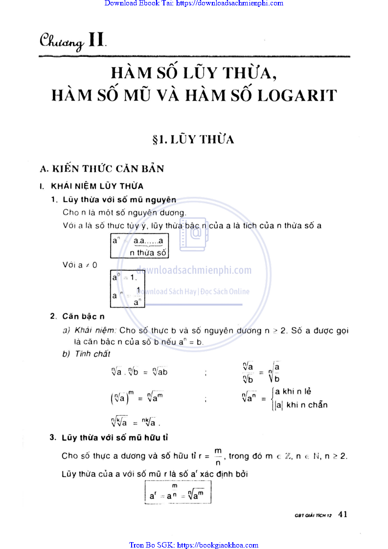 CHƯƠNG II. HÀM SỐ LŨY THỪA, HÀM SỐ MŨ VÀ HÀM SỐ LOGARIT