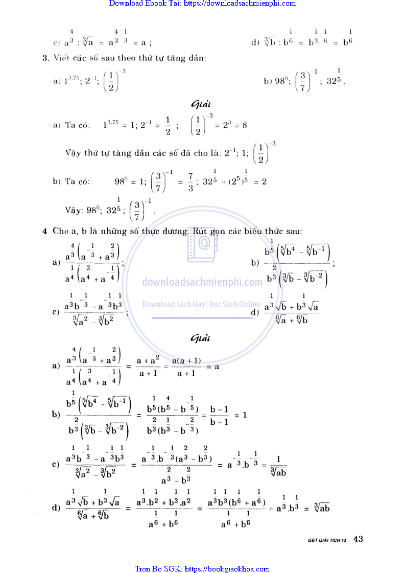 Giải Bài Tập Giải Tích Lớp 12 Chương Trình Chuẩn – Nguyễn Văn Lộc