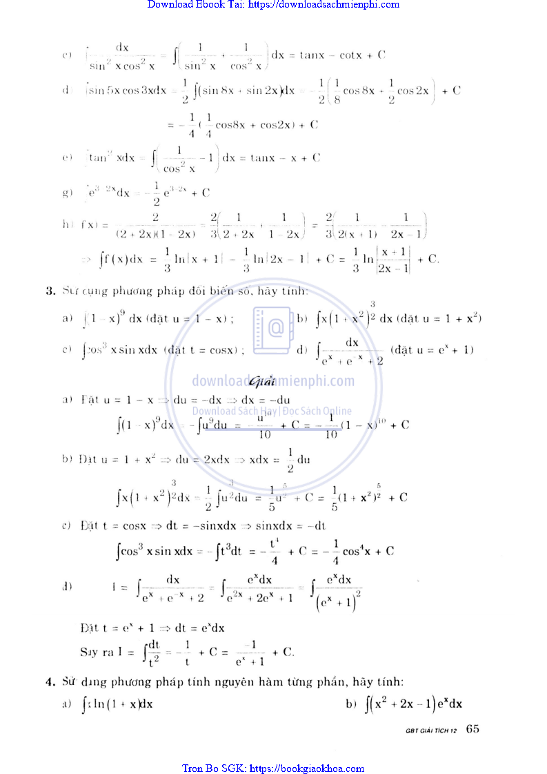 Giải Bài Tập Giải Tích Lớp 12 Nâng Cao – Nguyễn Văn Lộc