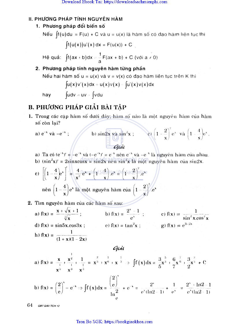 Giải Bài Tập Giải Tích Lớp 12 Chương Trình Chuẩn – Nguyễn Văn Lộc