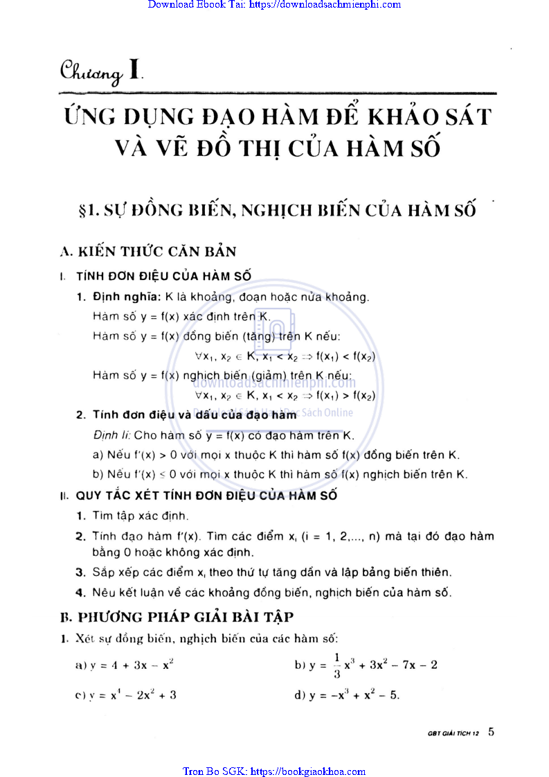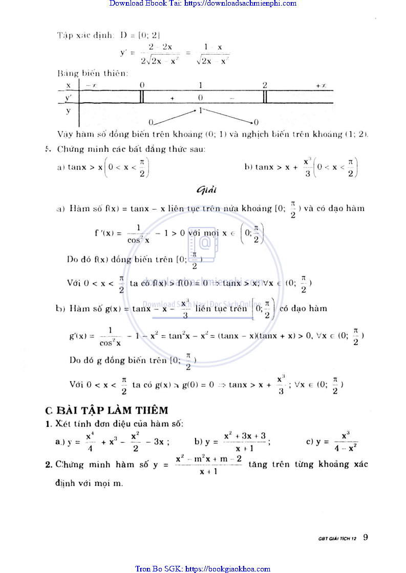 Giải Bài Tập Giải Tích Lớp 12 Chương Trình Chuẩn – Nguyễn Văn Lộc