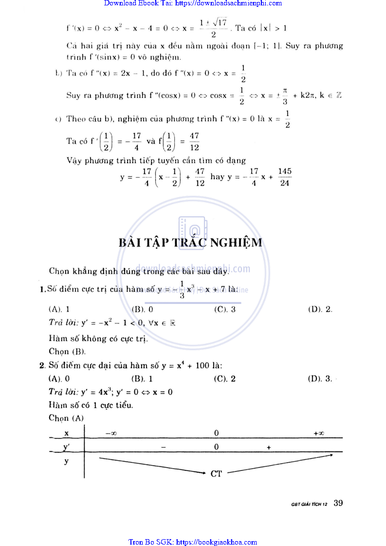 Giải Bài Tập Giải Tích Lớp 12 Chương Trình Chuẩn – Nguyễn Văn Lộc