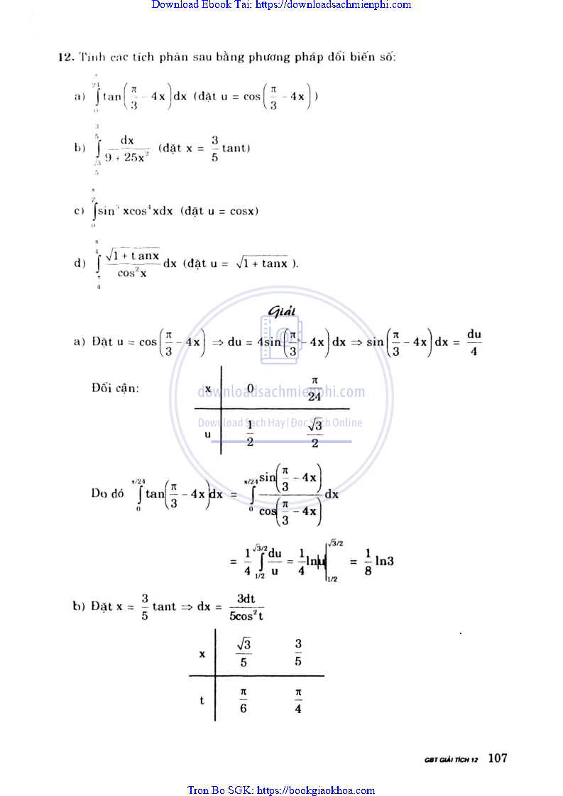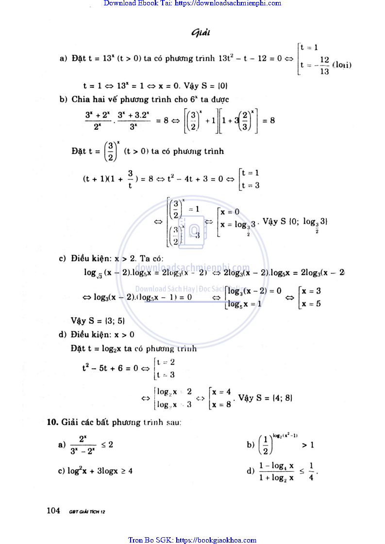 Giải Bài Tập Giải Tích Lớp 12 Chương Trình Chuẩn – Nguyễn Văn Lộc