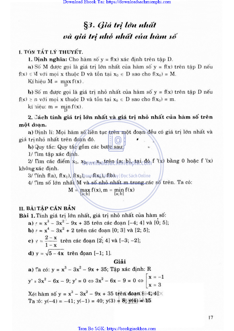 BÀI 3. GIÁ TRỊ LỚN NHẤT VÀ GIÁ TRỊ NHỎ NHẤT CỦA HÀM SỐ