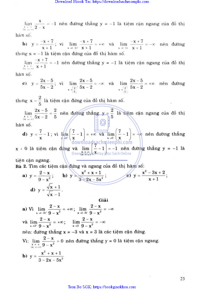 Giải Bài Tập Giải Tích Lớp 12 Chương Trình Chuẩn – Nguyễn Văn Lộc