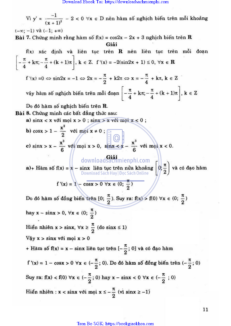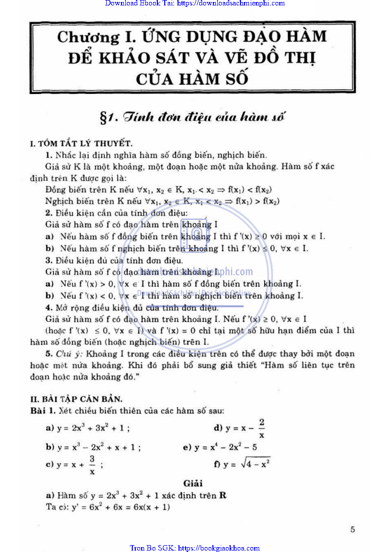 Giải Bài Tập Giải Tích Lớp 12 Chương Trình Chuẩn – Nguyễn Văn Lộc