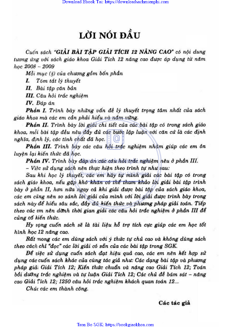 Giải Bài Tập Giải Tích 12 Nâng Cao – Nguyễn Vũ Thanh