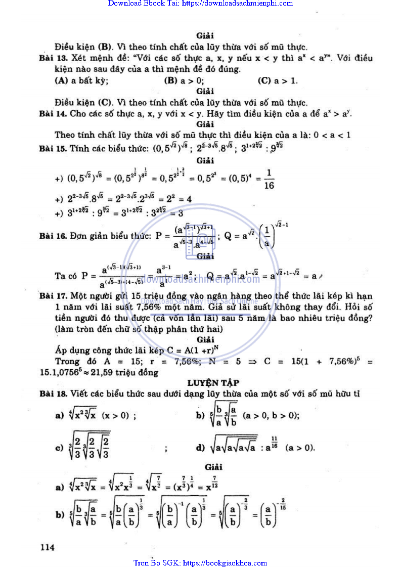 Giải Bài Tập Giải Tích Lớp 12 Chương Trình Chuẩn – Nguyễn Văn Lộc