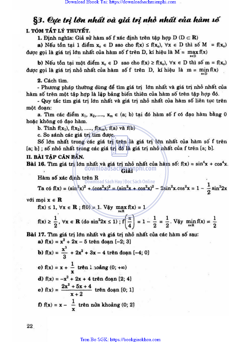 Giải Bài Tập Giải Tích Lớp 12 Chương Trình Chuẩn – Nguyễn Văn Lộc