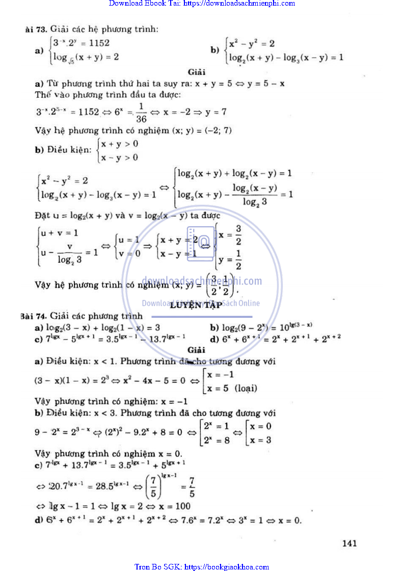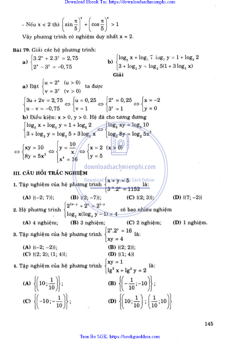 - BÀI 8. HỆ PHƯƠNG TRÌNH VÀ LÔGARIT