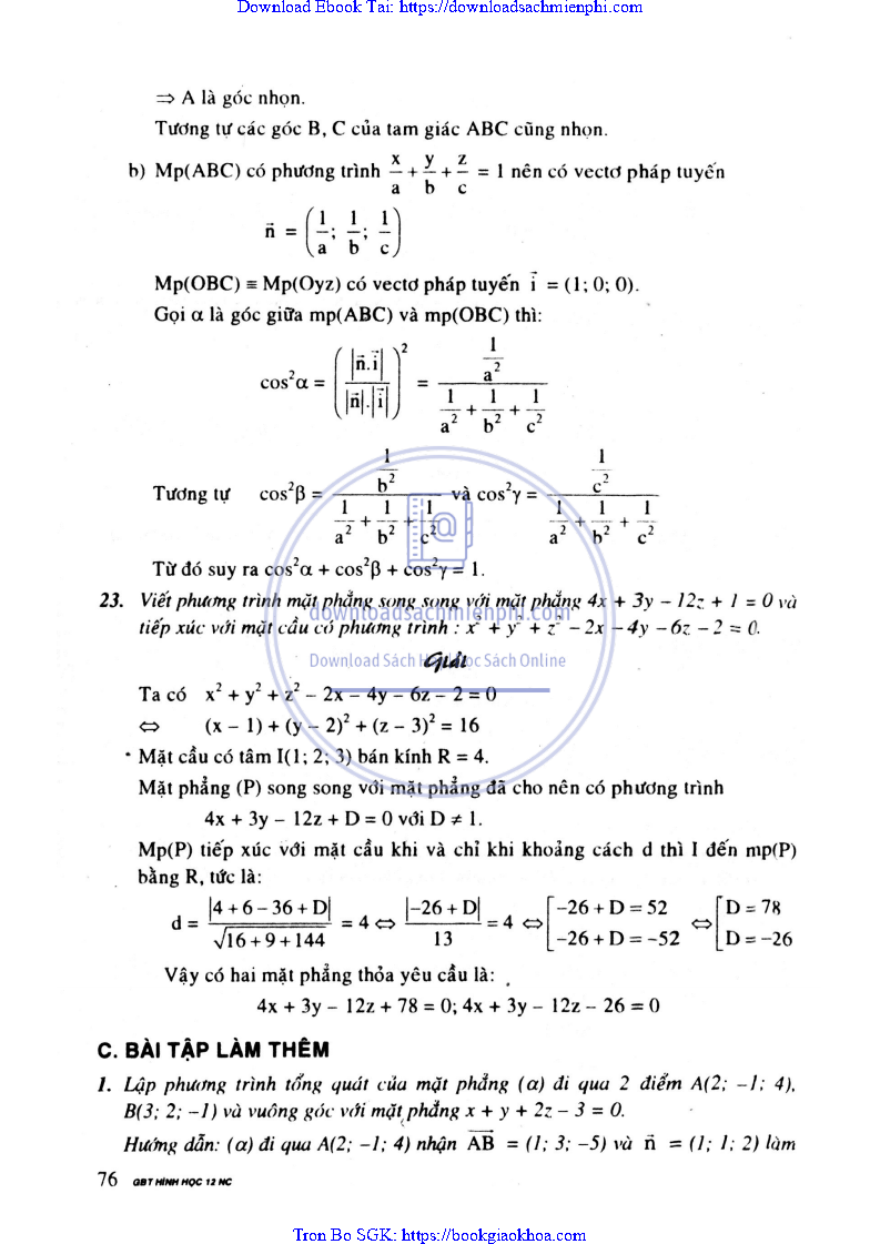 Giải Bài Tập Hình Học Lớp 12 Nâng Cao – Nguyễn Văn Lộc
