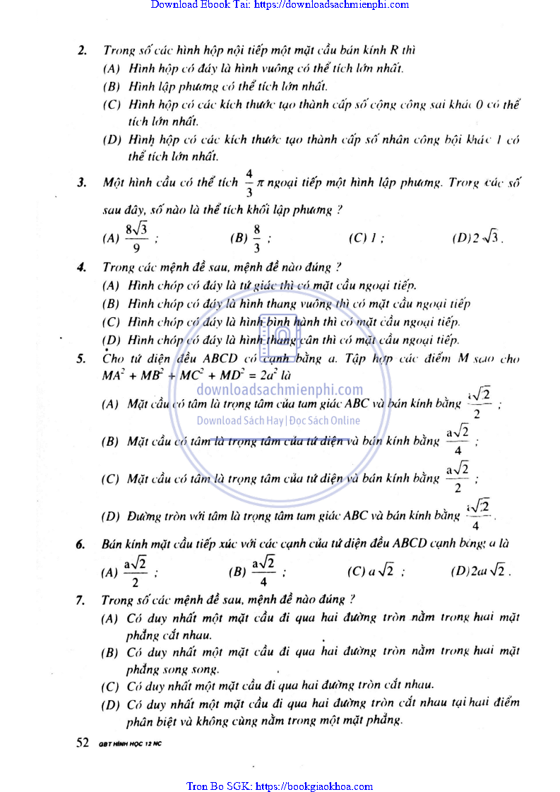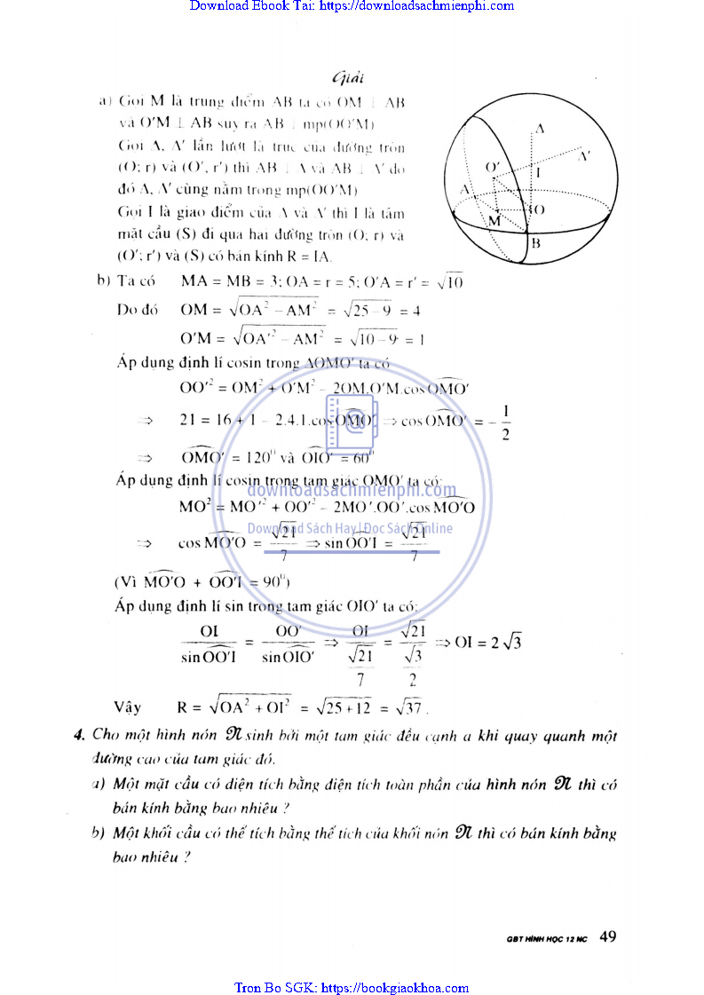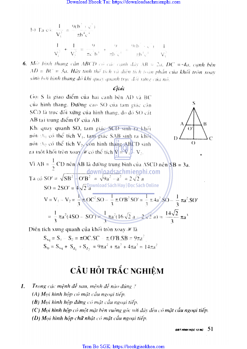 Giải Bài Tập Hình Học Lớp 12 Nâng Cao – Nguyễn Văn Lộc