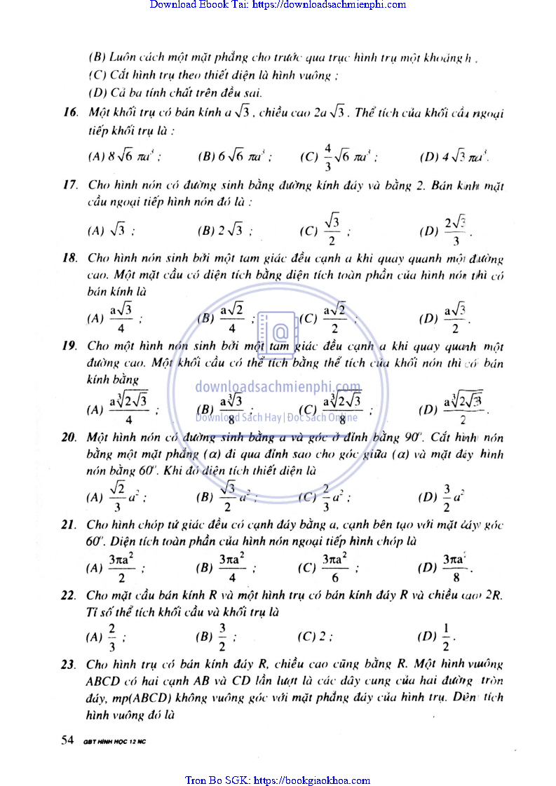 CHƯƠNG II. MẶT NÓN, MẶT TRỤ, MẶT CẦU