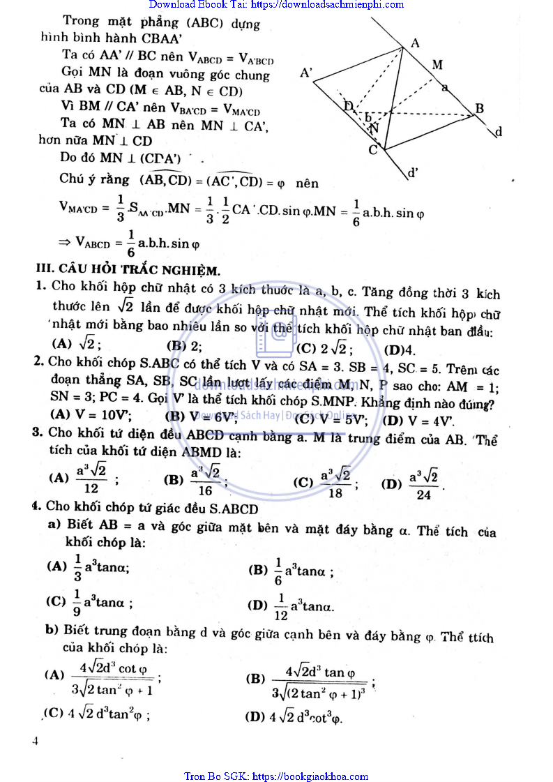 Giải Bài Tập Hình Học Lớp 12 Nâng Cao – Nguyễn Văn Lộc
