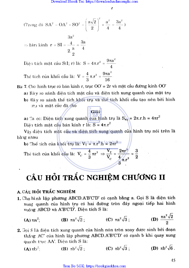 Giải Bài Tập Hình Học 12 Nâng Cao – Nguyễn Vũ Thanh