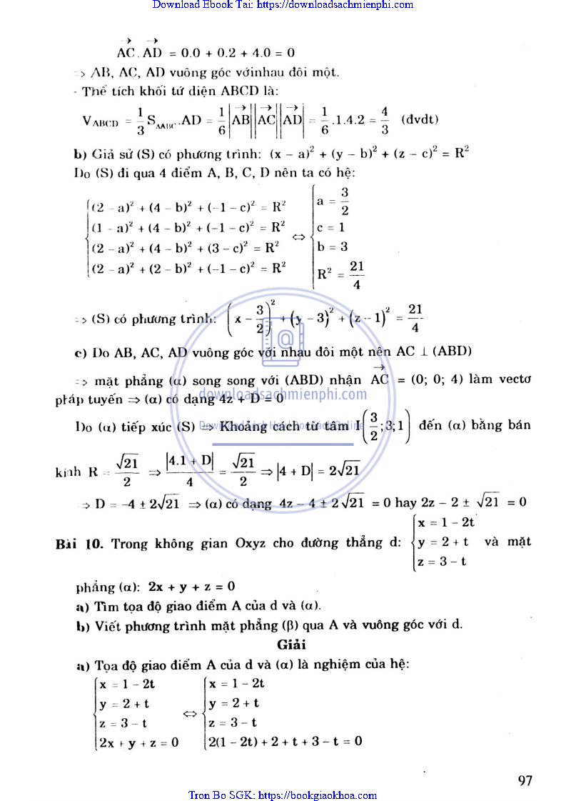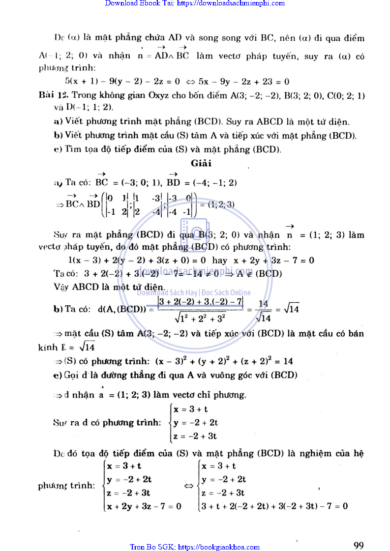 Giải Bài Tập Hình Học Lớp 12 Nâng Cao – Nguyễn Văn Lộc