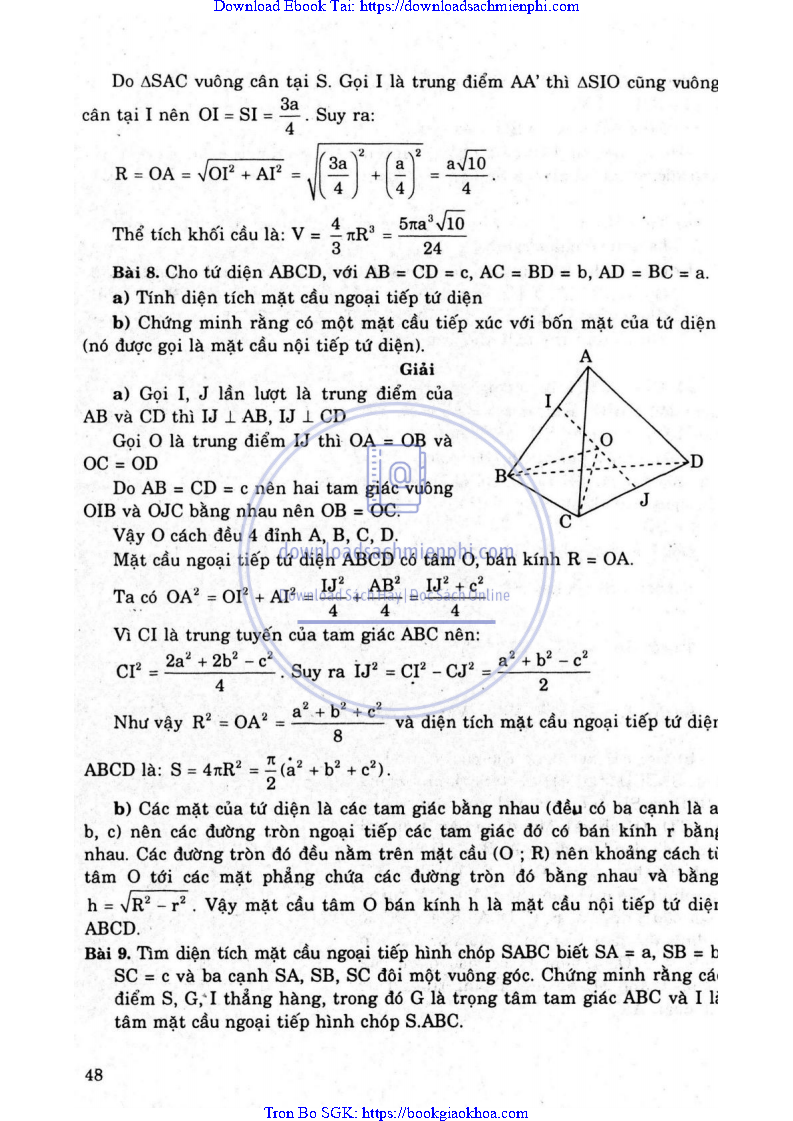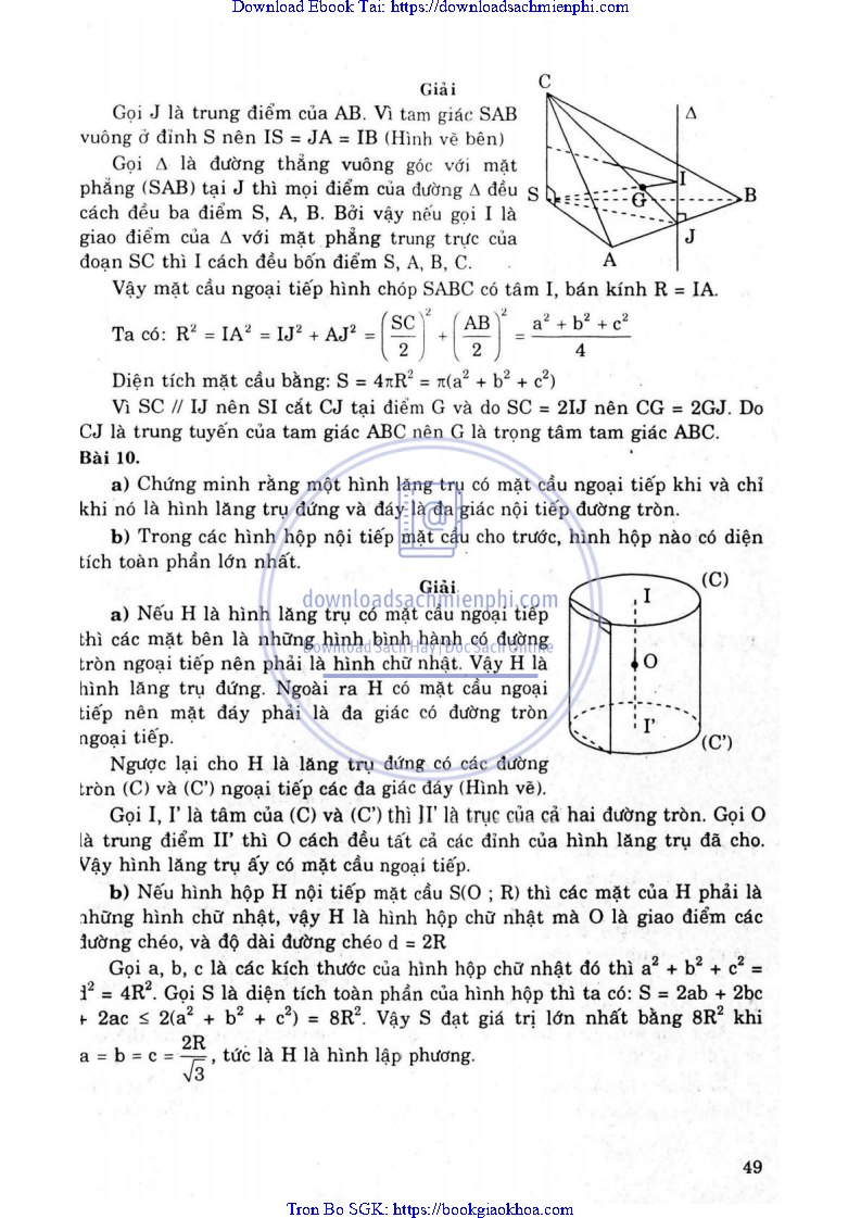 Giải Bài Tập Hình Học Lớp 12 Nâng Cao – Nguyễn Văn Lộc