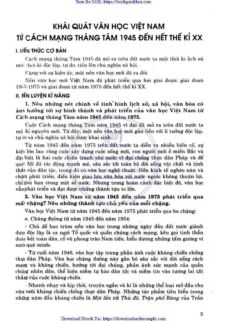 KHÁI QUÁT VĂN HỌC VIỆT NAM TỪ ĐẦU CÁCH MẠNG THÁNG TÁM 1945 ĐẾN THẾ KỈ XX