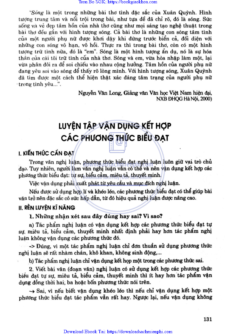 LUYỆN TẬP VẬN DỤNG KẾT HỢP CÁC PHƯƠNG THỨC BIỂU ĐẠT TRONG BÀI VĂN NGHỊ LUẬN