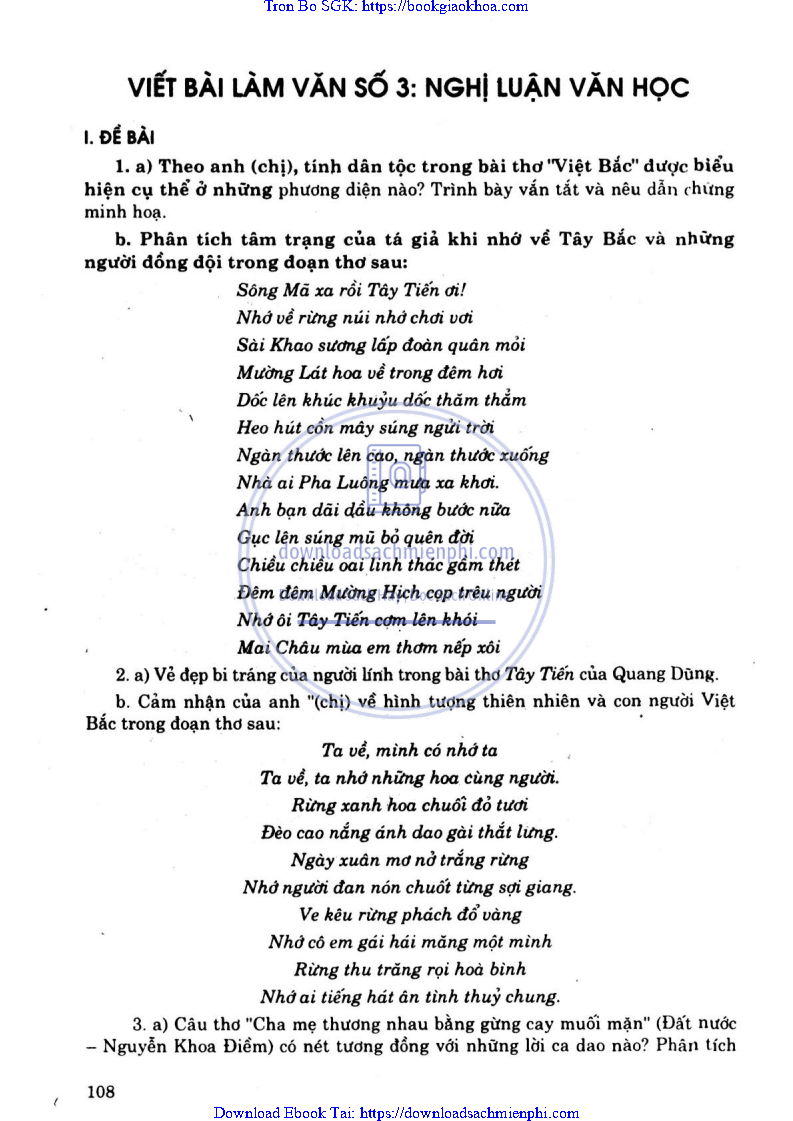VIẾT BÀI LÀM VĂN SỐ 3: NGHỊ LUẬN VĂN HỌC
