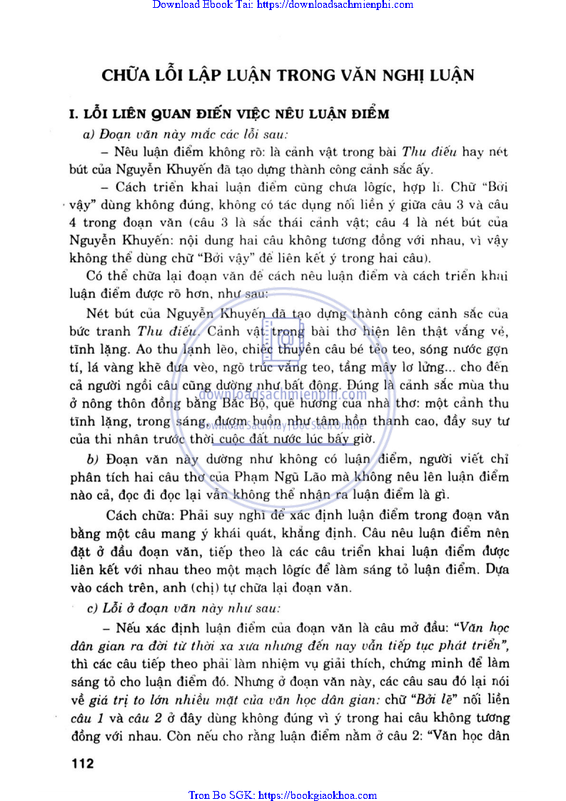 CHỮA LỖI LẬP LUẬN TRONG VĂN NGHỊ LUẬN