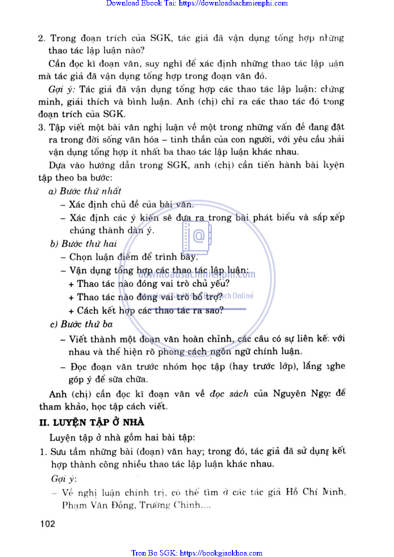 LUYỆN TẬP VẬN DỤNG KẾT HỢP CÁC THAO TÁC LẬP LUẬN