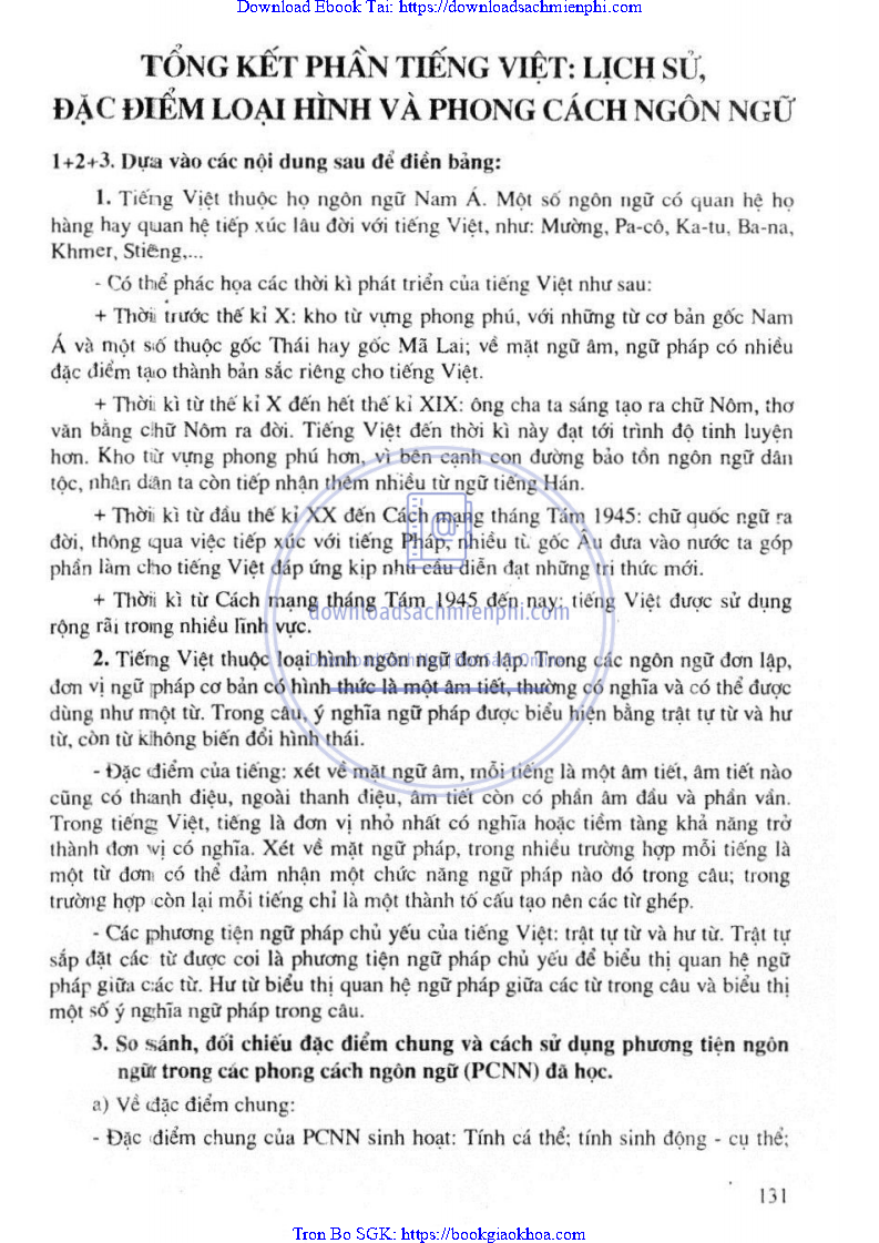 TỔNG KẾT PHẦN TIẾNG VIỆT: LỊCH SỬ, ĐẶC ĐIỂM LOẠI HÌNH VÀ CÁC PHONG CÁCH NGÔN NGỮ