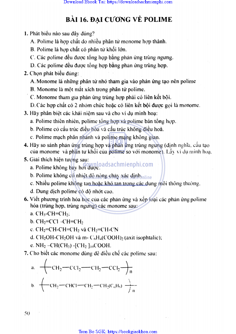 - CHƯƠNG IV. POLIME VÀ VẬT LIỆU POLIME