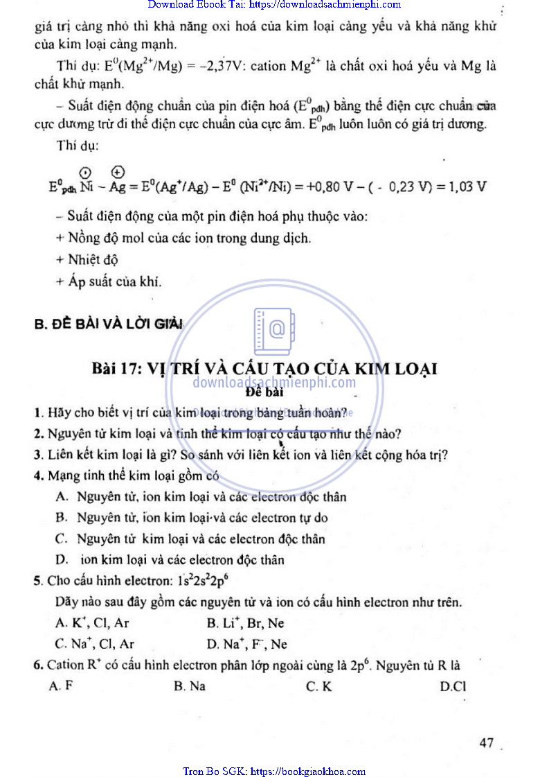 CHƯƠNG V. ĐẠI CƯƠNG VỀ KIM LOẠI