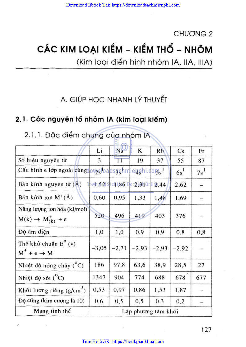 - CHƯƠNG 2: CÁC KIM LOẠI KIỀM – KIỀM THỔ – NHÔM (KIM LOẠI ĐIỂN HÌNH NHÓM IA, IIA, IIIA)