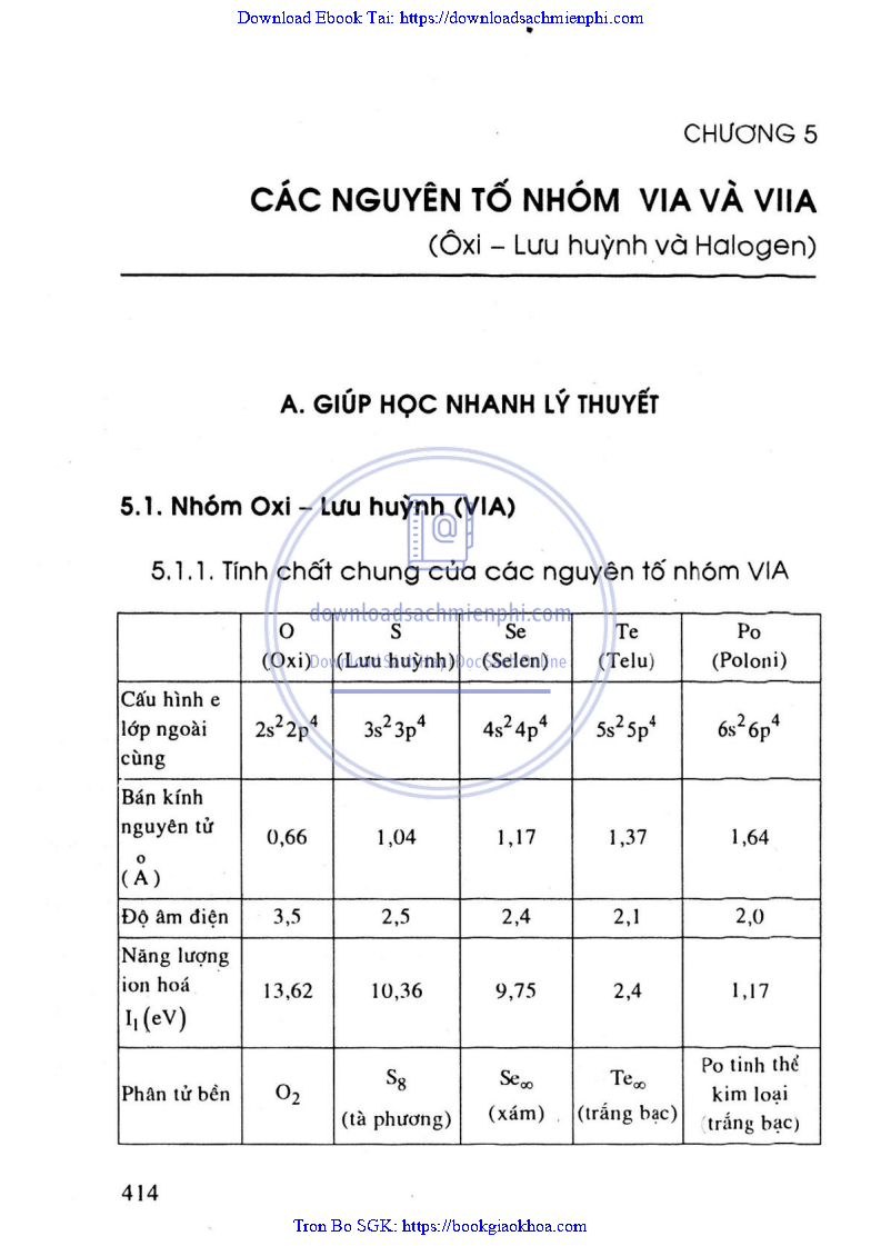 CHƯƠNG 5: CÁC NGUYÊN TỐ NHÓM VIA VÀ VIIA (OXI – LƯU HUỲNH VÀ HALOGEN)