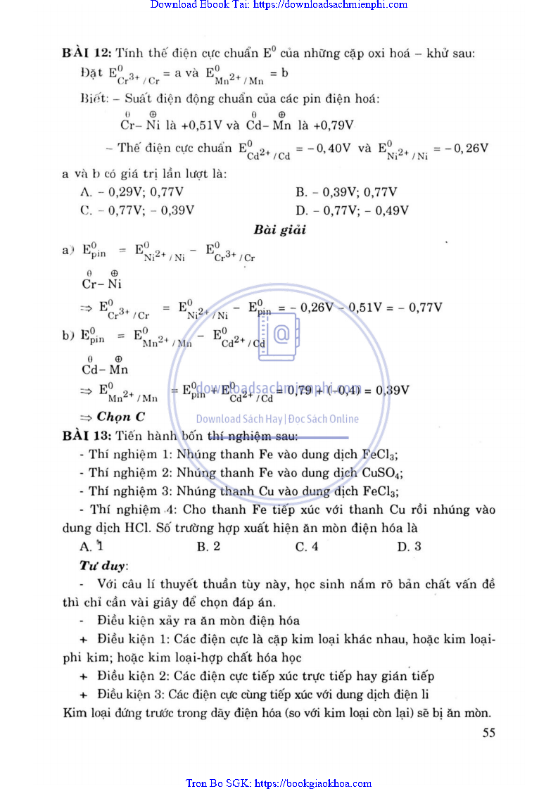 Hướng Dẫn Giải Bài Tập Hóa Học 12 Nâng Cao – Trần Trung Ninh