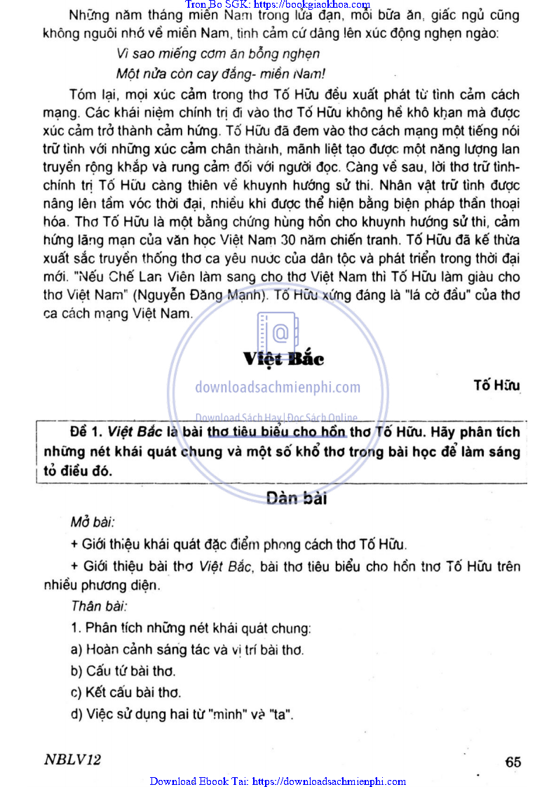 ĐỀ 1 – CHỨNG MINH: VIỆT BẮC LÀ BÀI THƠ TIÊU BIỂU CHO HỒN THƠ TỐ HỮU