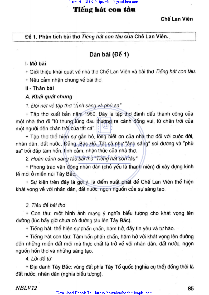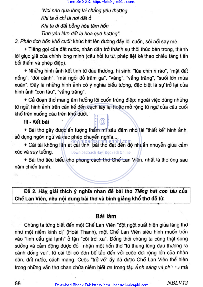 - ĐỀ 2 – GIẢI THÍCH Ý NGHĨA NHAN ĐỀ BÀI THƠ TIẾNG HÁT CON TÀU CỦA CHẾ LAN VIÊN, NÊU NỘI DUNG BÀI THƠ VÀ BÌNH GIẢNG KHỔ THƠ ĐỀ TỪ