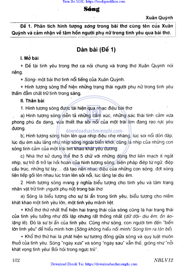 - ĐỀ 1 – PHÂN TÍCH HÌNH TƯỢNG SÓNG TRONG BÀI THƠ CÙNG TÊN CỦA XUÂN QUỲNH VÀ CẢM NHẬN VỀ TÂM HỒN NGƯỜI PHỤ NỮ TRONG TÌNH YÊU QUA BÀI THƠ