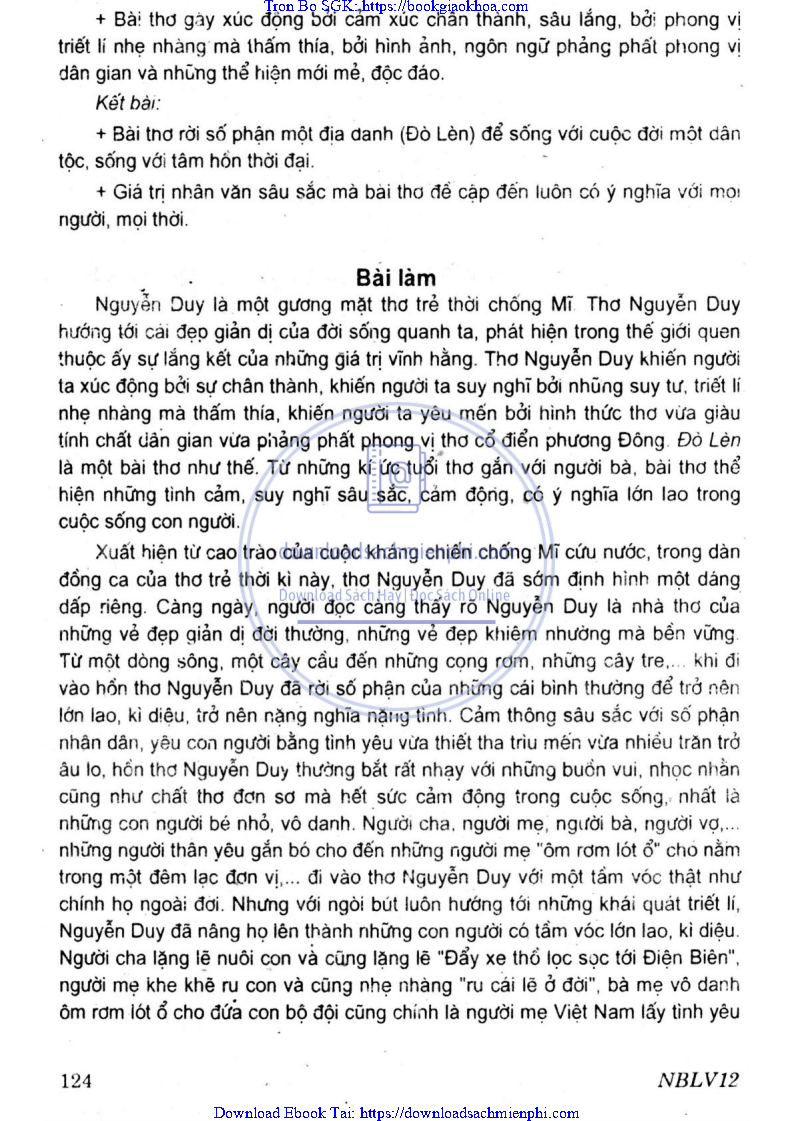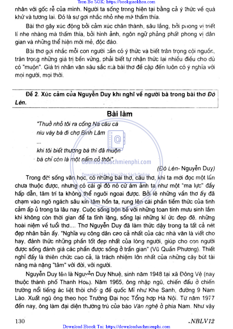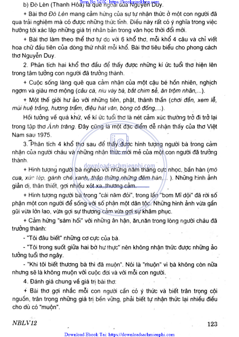 ĐỀ 1 – TỪ NHỮNG KÍ ỨC TUỔI THƠ GẮN VỚI NGƯỜI BÀ CỤ THỂ, NHÀ THƠ NGUYỄN DUY ĐÃ LẮNG KẾT THÀNH NHỮNG GIÁ TRỊ VĨNH HẰNG TRONG CUỘC SỐNG CON NGƯỜI. PHÂN TÍCH BÀI THƠ ĐÒ LÈN ĐỂ THẤY LÀM SÁNG TỎ NHẬN ĐỊNH ĐÓ
