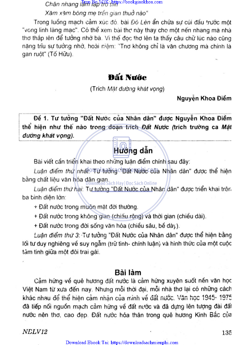 - ĐỀ 2 – HÌNH TƯỢNG ĐẤT NƯỚC QUA ĐẤT NƯỚC CỦA NGUYỄN ĐÌNH THI VÀ ĐẤT NƯỚC (TRÍCH TRƯỜNG CA MẶT ĐƯỜNG KHÁT VỌNG) CỦA NGUYỄN KHOA ĐIỀM