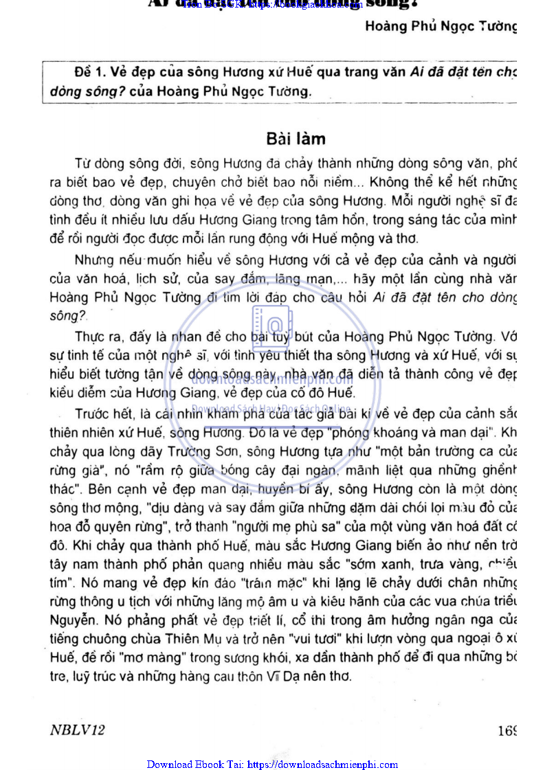 ĐỀ 1 – VẺ ĐẸP CỦA SÔNG HƯƠNG XỨ HUẾ QUA TRANG VĂN AI ĐÃ ĐẶT TÊN CHO DÒNG SÔNG? CỦA HOÀNG PHỦ NGỌC TƯỜNG